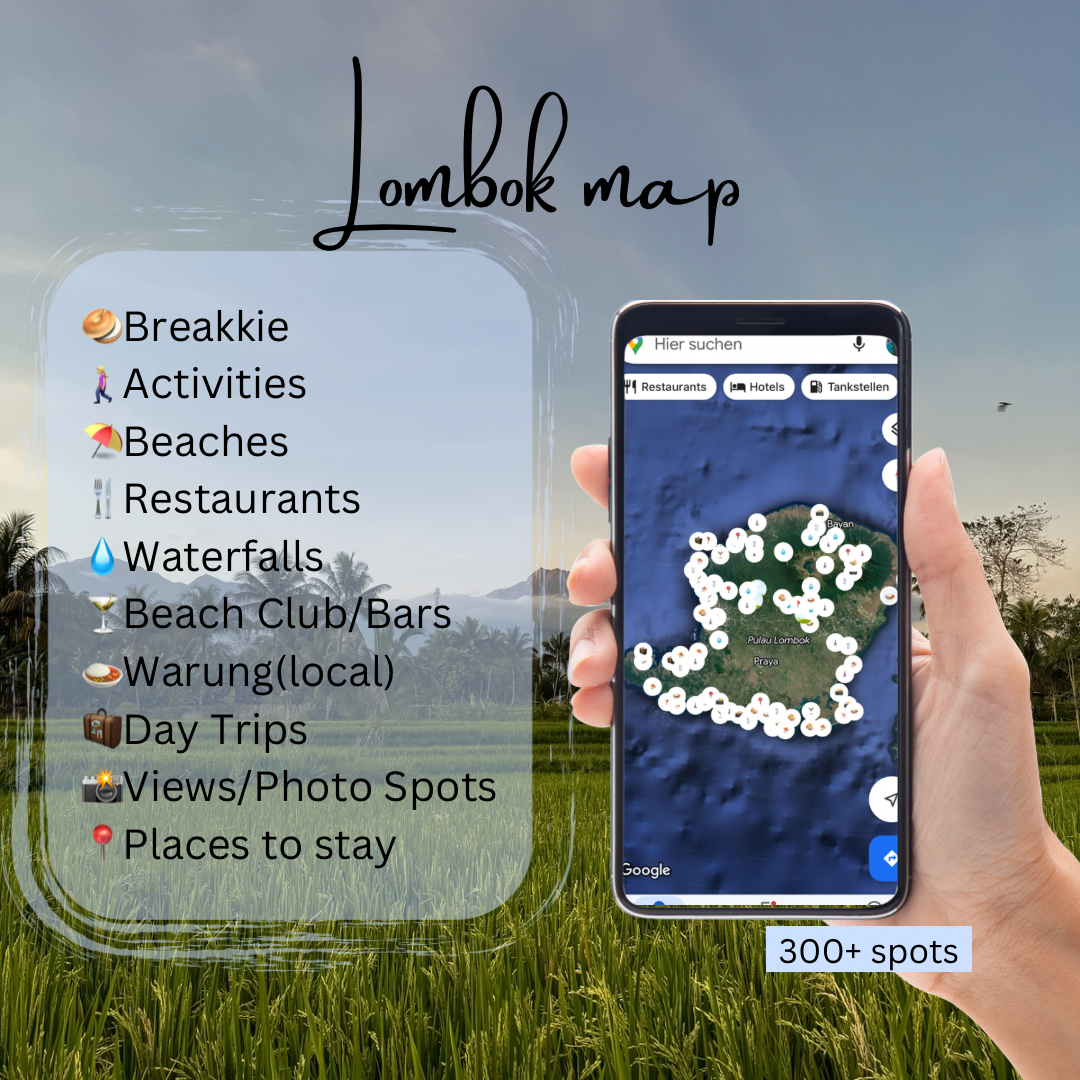 Discover Lombok with our digital map! Explore stunning waterfalls, charming places to stay, and the best breakfast spots across the island. Our map is your ultimate guide to uncovering the beauty and hidden gems of Lombok. Download your digital map now and start your adventure today!